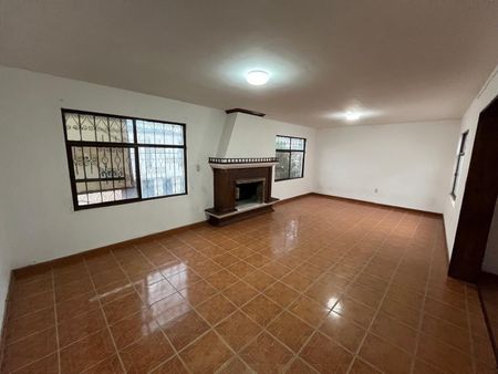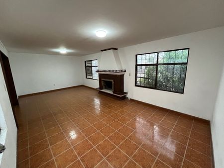 Amplia estancia con chimenea, 4 recámaras, 1 baño completo.